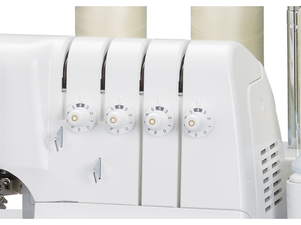 - Jednoduché nastavenie dĺžky stehu, automatických rolovaných lemov a okrajov ovládacím prvkom