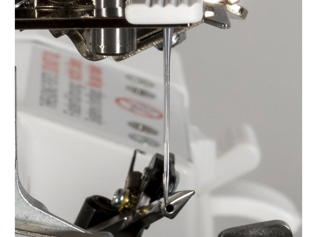 - Systém navliekania ihiel - zablokuje navliekač ihiel v polohe pre rýchle a jednoduché navliekanie jediným dotykom páky