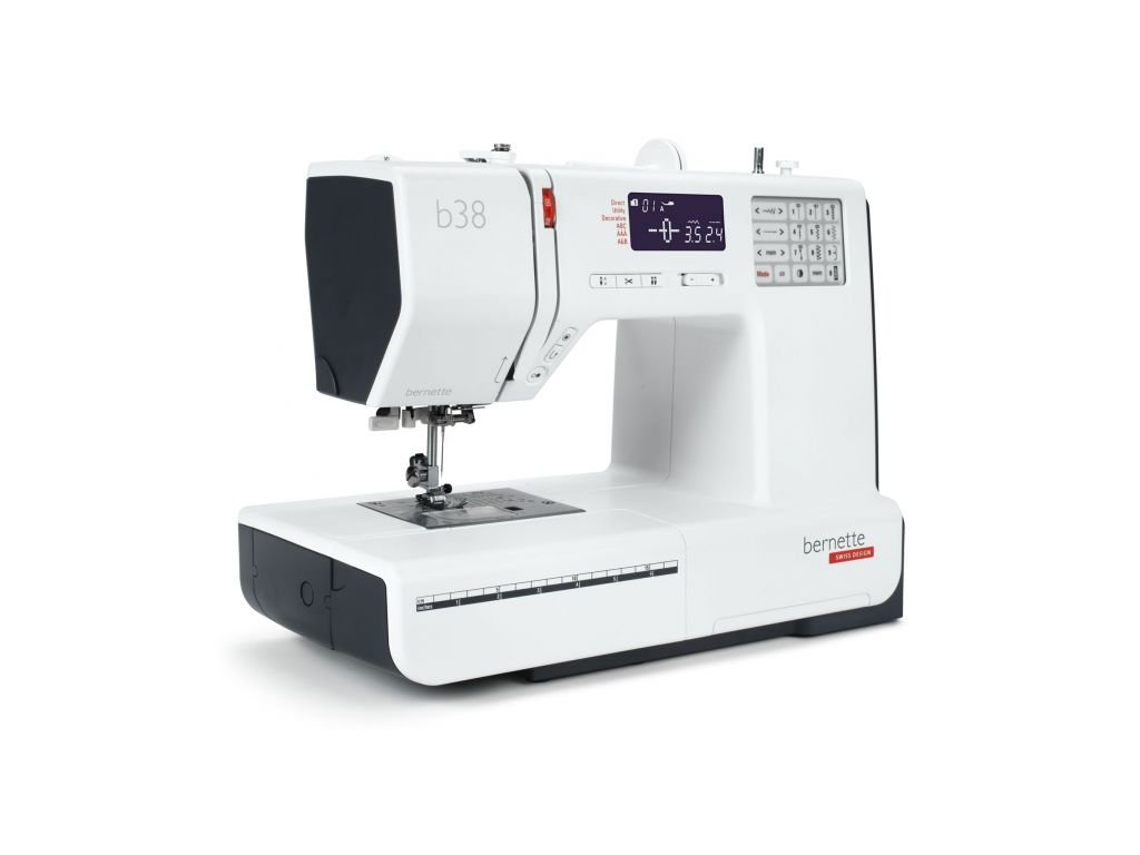 Šijací stroj Bernette b38 je elektronický domáci šijací stroj, ktorý má 394 šijacích programov, kyvny CB chapač a voľné rameno. Má robustnú kovovú konštrukciu, ktorá zaisťuje stabilný chod aj pri veľkom zaťažení. Je výborným pomocníkom aj pre začiatočníkov. Šijací stroj šije 8 typov automatickej gombíkovej dierky, umožňuje šitie dvojihlou a má reguláciu prítlaku pätky. Stroj má rýchloupínacie pätky - jednoduchá a rýchla výmena pätiek.
