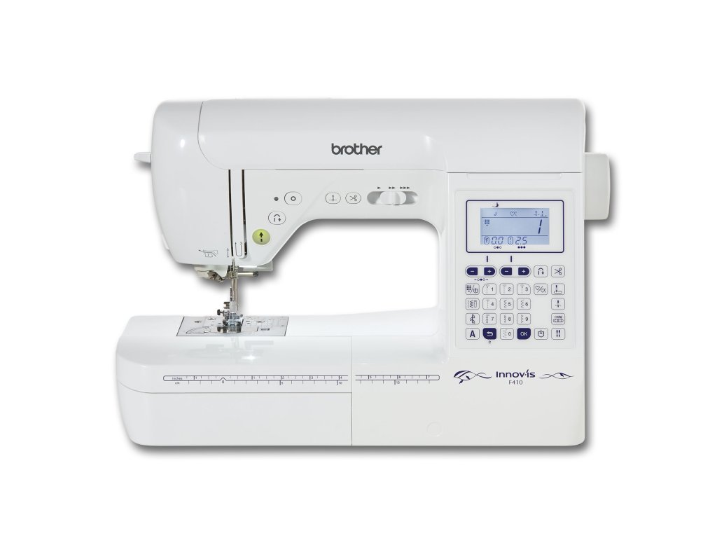 Šijacie stroje Brother F 410 sú elektronické šijacie stroje a novinka zimy 2016. Majú automatický odstrih nite vhodný na patchwork a quilting. 100 druhov stehov, 6 typov automatickej gombíkovej dierky, prehľadný LCD displej a 4 druhy abecedy (len veľké písmená). Brother F 410 Vám umožní vytváranie a ukladanie vlastných stehov od pamäte stroja. Stroj má okrem toho automatický navliekač ihiel, možnosť polohovania ihly, šitie bez nožného pedála či automatické zapošitie.