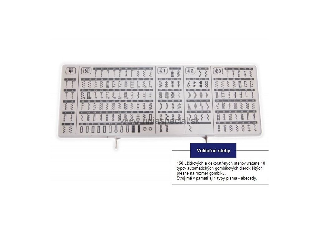 - Kombinovanie stehov - kombinácie až 70 stehov a vzorov