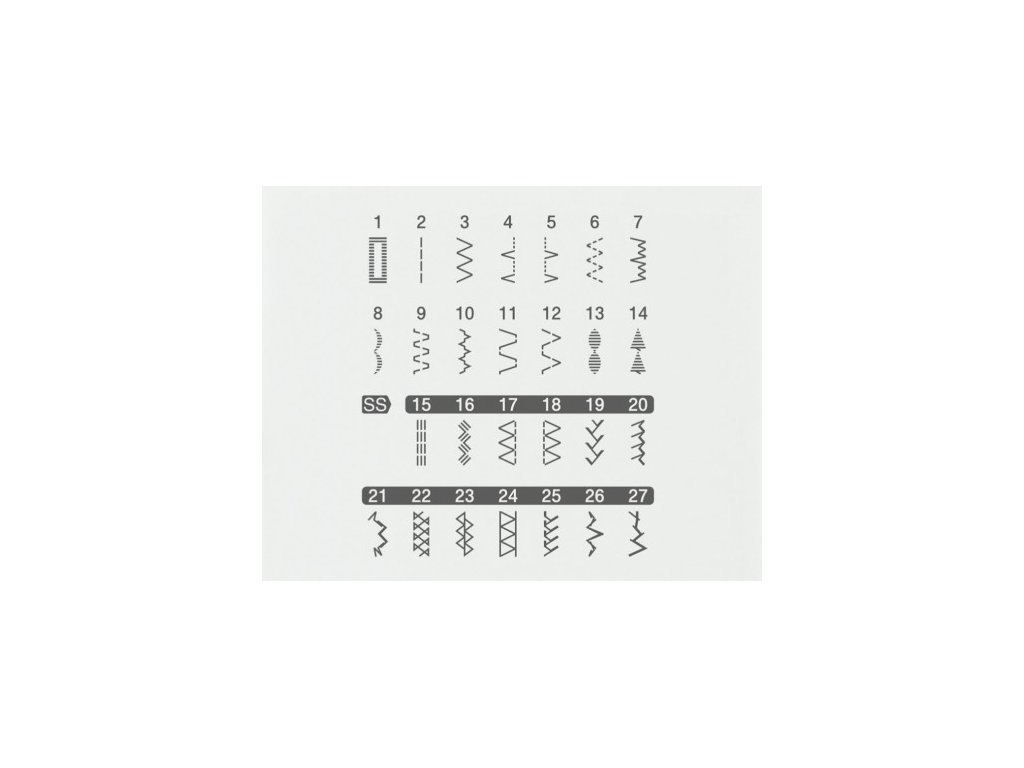 - 27 šijacích programov vrátane overlockových, pružných a dekoračných stehov