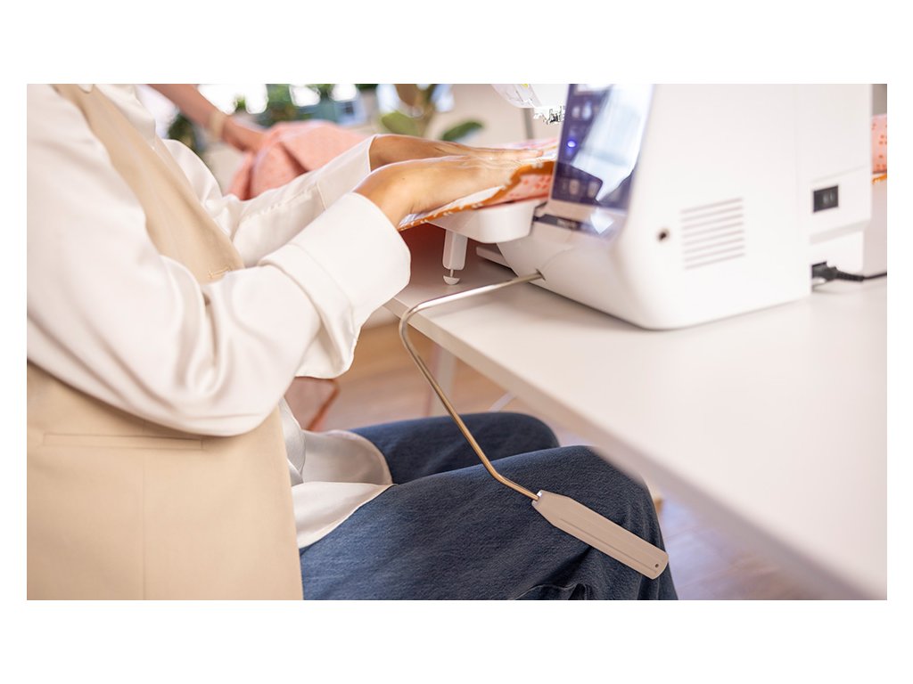 - Stranové podávanie látky - umožňuje šitie extra širokých dekoratívnych stehov až 40 mm