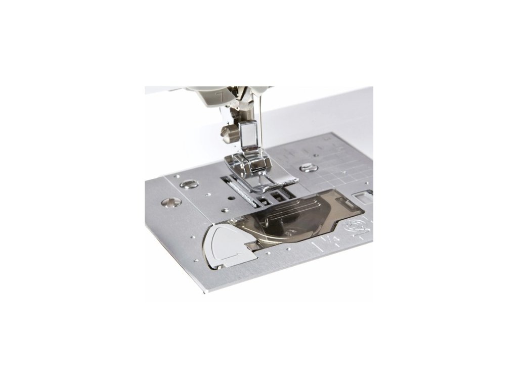 Šijací stroj Brother Inventio NV 1850 Q je vysoko moderný elektronický šijací stroj značky Brother s českým jazykom už v základnom nastavení. Obsahuje 232 druhov stehov vrátane overlockových, dekoračných, patchworkových stehov ako aj možnosti tvorby vlastných stehov, 10 typov automatickej gombíkovej dierky šitej na 1 krok a unikátny SFDS obdĺžnikový podávač látky. Cievka na spodnú niť sa vkladá do horizontálneho rotačného chapača s priehľadnou krytkou, cez ktorú možno sledovať množstvo navinutej nite. Obdĺžnikové podávanie zaručuje lepšie podávanie látky už od jej okraja. Zároveň vie tento stroj šiť aj do strán - získate tak až 40 mm široké dekoratívne stehy. ICAPS systém automaticky nastaví prítlak pätky. Stroj je ďalej vybavený automatickým napätím hornej nite, navliekačom ihly, automatickým strihaním oboch nití a kolennou pákou na zdvih pätky kolenom. Veľkú pracovnú plochu 21 cm vpravo od ihly oceníte najmä pri šití väčších prác, rovnako ako možnosť polohovania ihly hore a dole, tlačidlo štart / stop na šitie bez pedála aj tlačidlo automatického zapošitia. Brother Inventio NV 1850 Q je ideálny pomocník pre kreatívne šitie, patchwork a quilting.