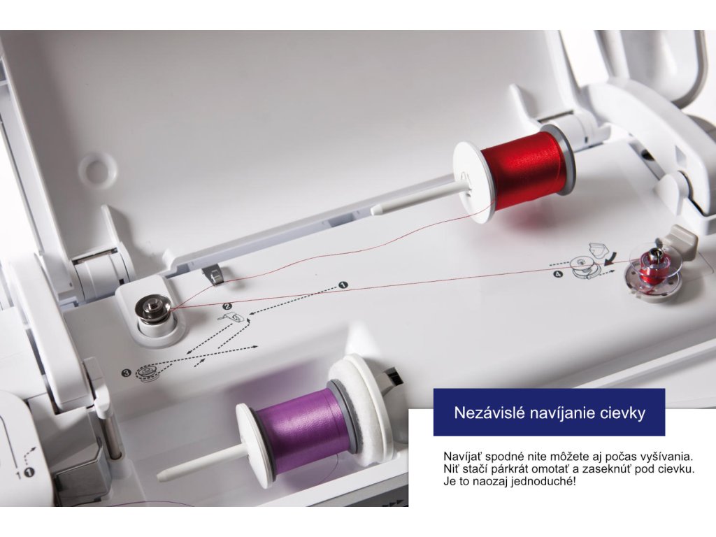 - Nezávislé cievkovanie - cievky môžete navíjať aj počas vyšívania