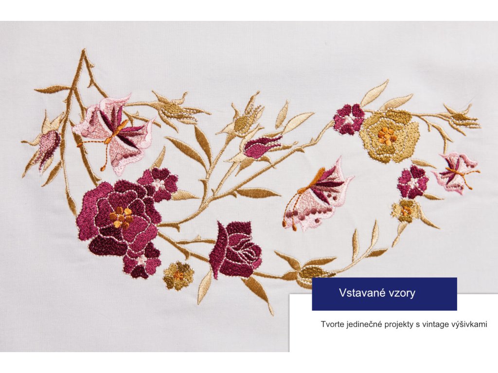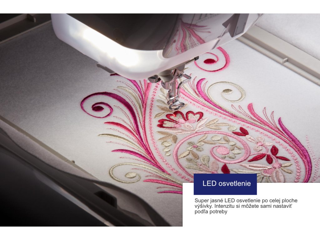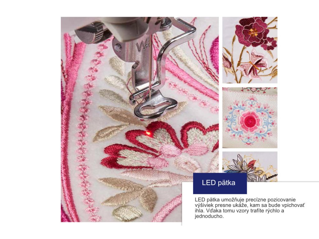 - Rýchlosť vyšívania je až 1050 stehov za minútu
