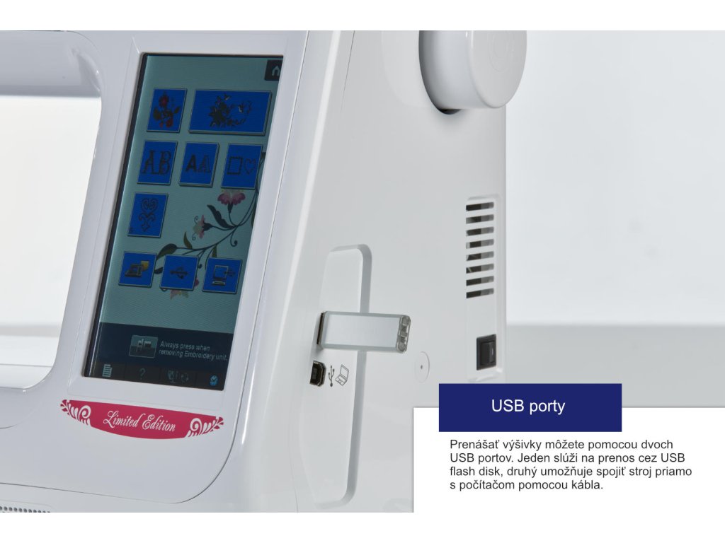 - 2 USB porty - jeden pred USB flash disk a druhý na spojenie stroja s PC