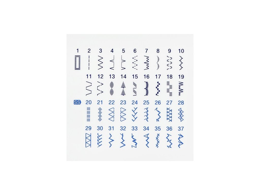 - 37 šijacích programov vrátane overlockových, pružných a dekoračných stehov