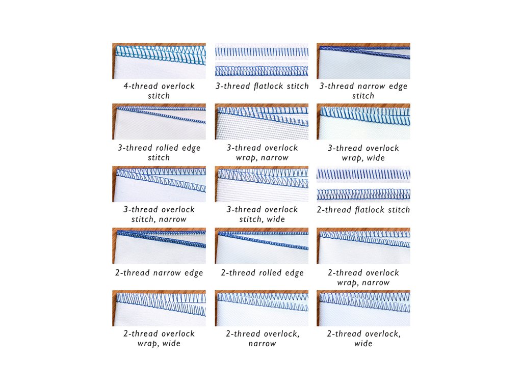 - 15 druhov stehu, medzi nimi aj rolovaný lem