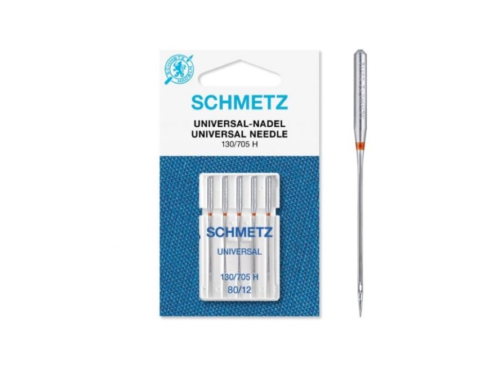 Ihly Schmetz 130/705H Universal (5x80) sú vhodné pre stroje, ktoré používajú ihly s plôškou a overlocky Lucznik 720D-4. Ihly majú ostrý hrot a sú vhodné na tkané materiály (nie na úplety!).