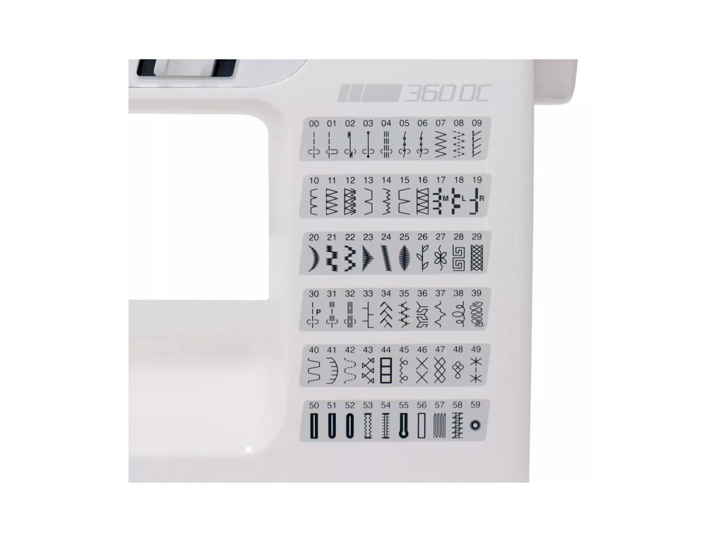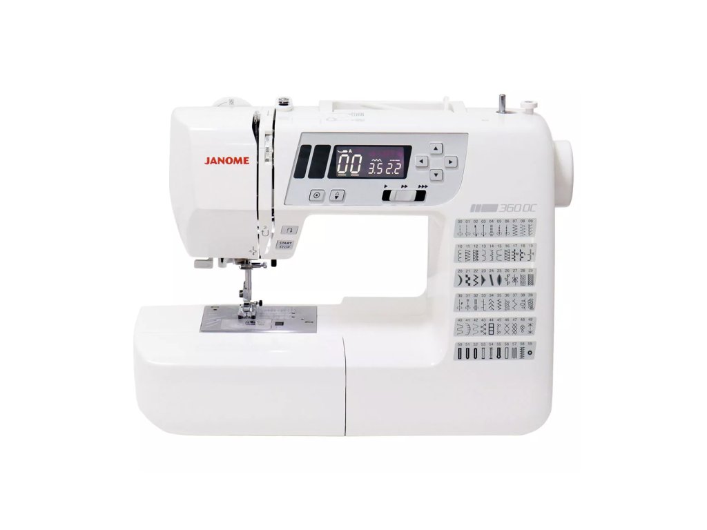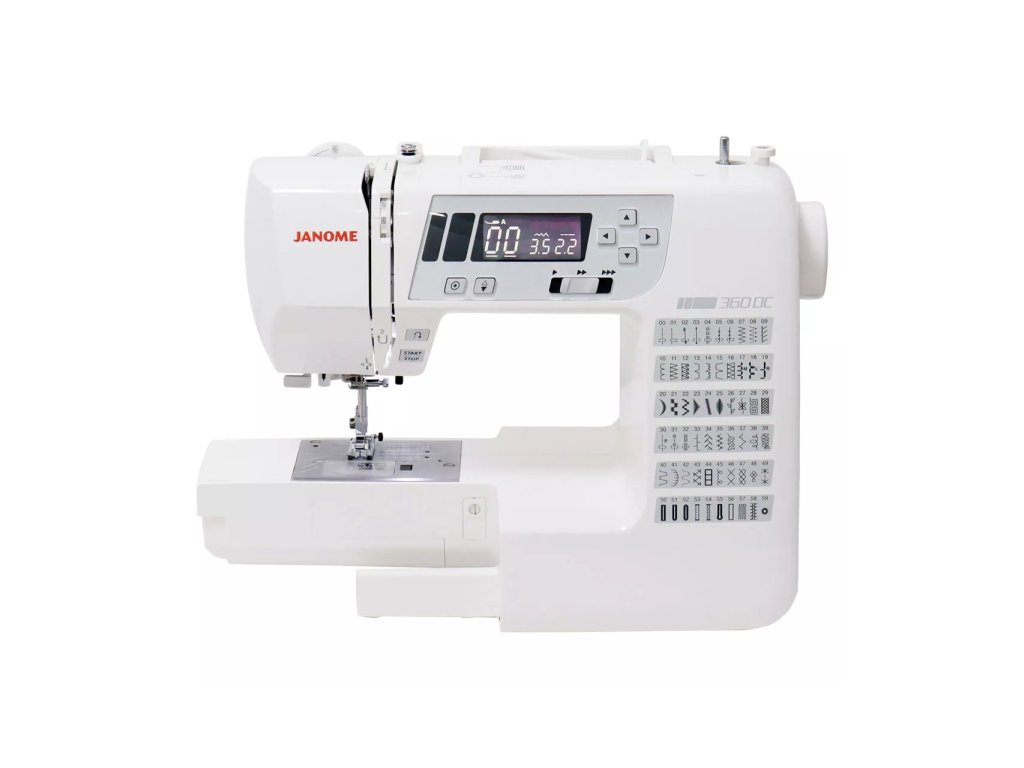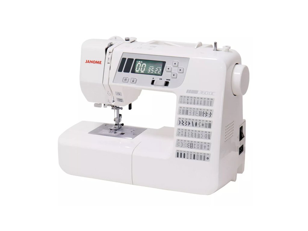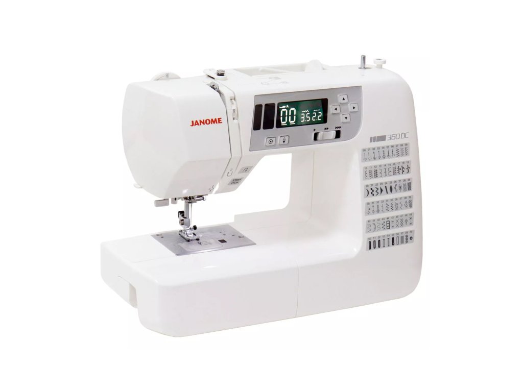 Šijacie stroje Janome 360 DC sú elektronické šijacie stroje, ktoré majú 60 programov, overlockový steh, 8 druhov automatickej gombíkovej dierky, manuálny prítlak pätky, rozširujúci stolík, pevný plastový kryt ale tiež blokový podávač SFS - technológia priemyselných strojov.