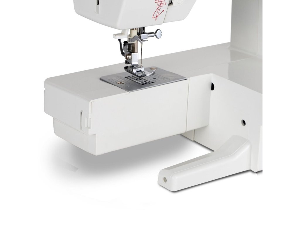- Voľné rameno uľahčuje šitie manžiet, nohavíc a klobúkov