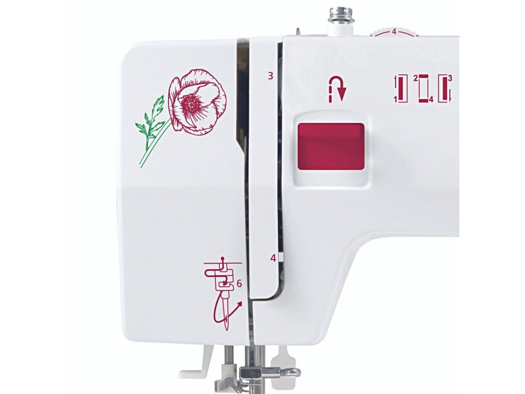 - Telo stroja je vyrobené z hliníkového korpusu, v šijacom mechanizme sú použité kovové súčiastky, vonkajšie časti stroja sú plastové