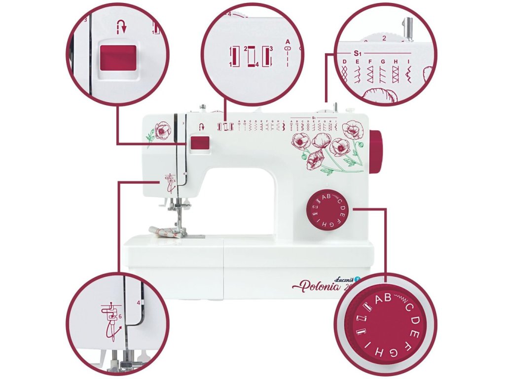 Šijacie stroje Lucznik 2018 Polonia sú moderné šijacie stroje do každej domácnosti. Majú 22 programov, kovový kývny CB chapač, 4 krokovú gombíkovú dierku, automatický navliekač ihly, overlockové stehy, voľné rameno, plynulú reguláciu dĺžky stehu, spätný chod, možnosť šitia dvojihlou a ďalšími užitočnými funkciami...