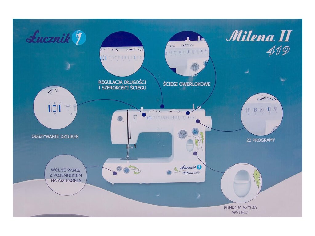 Šijacie stroje Lucznik 419 Milena sa ihneď po uvedení na trh zaradili medzi najobľúbenejšie šijacie stroje. Sú to moderné mechanické šijacie stroje do domácnosti, ktoré ocenia najmä mierne pokročilé štvorčeky.