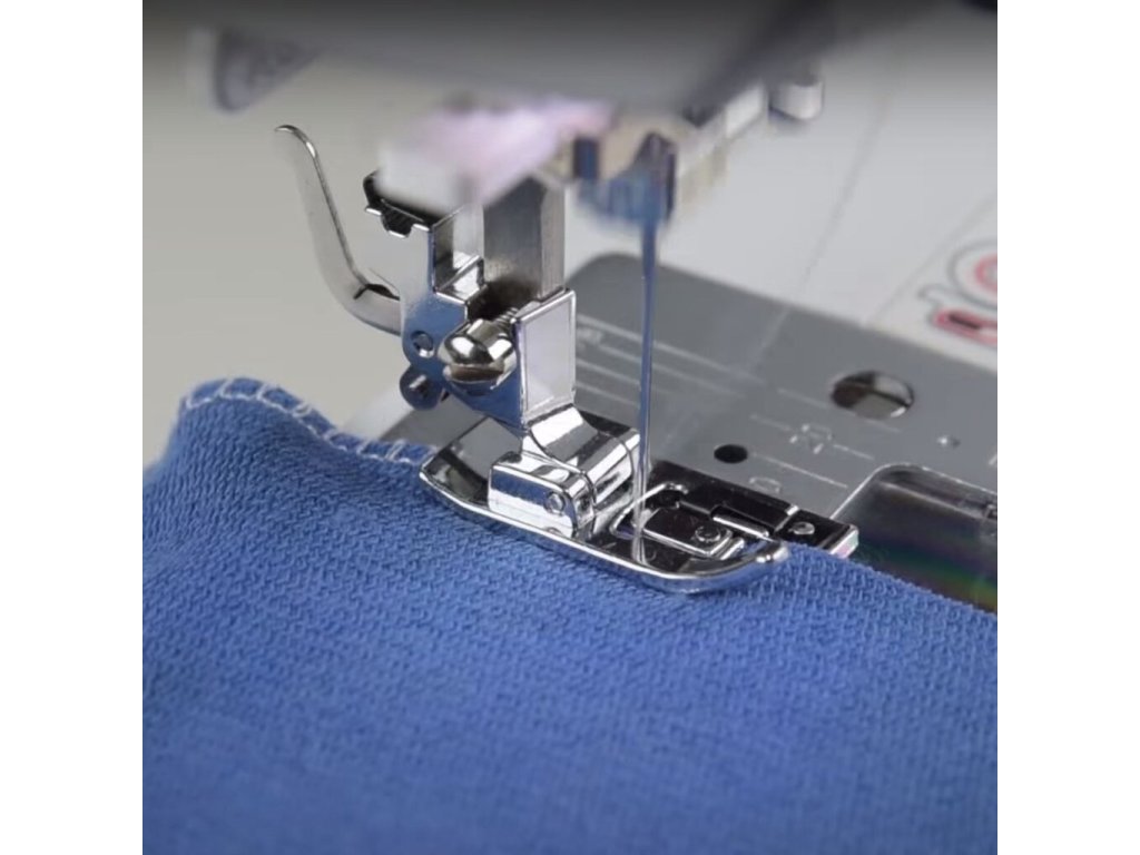 - Vysoký zdvih pätky umožňujúci šitie niekoľkých vrstiev materiálu