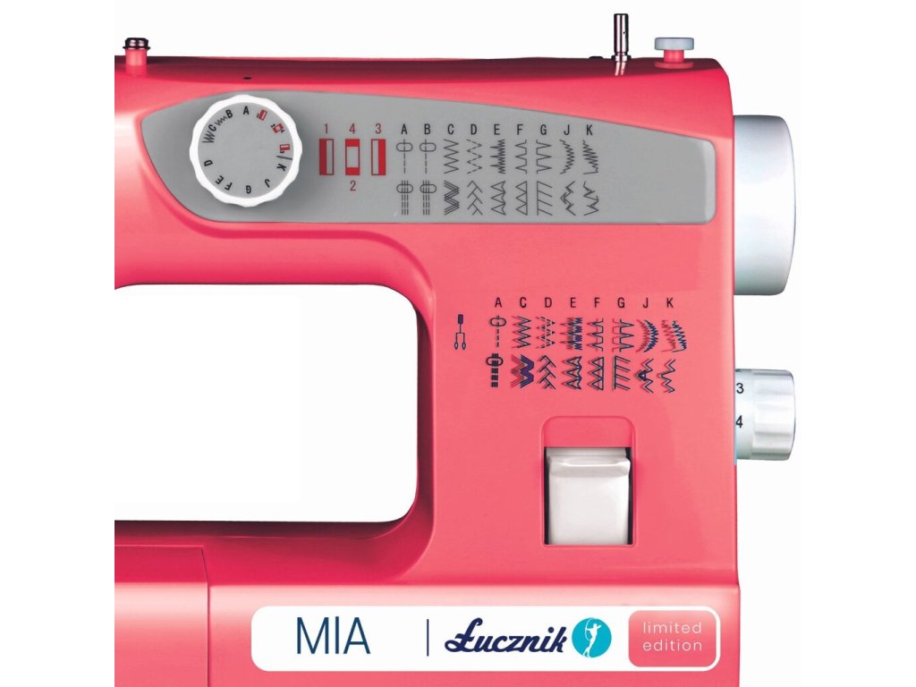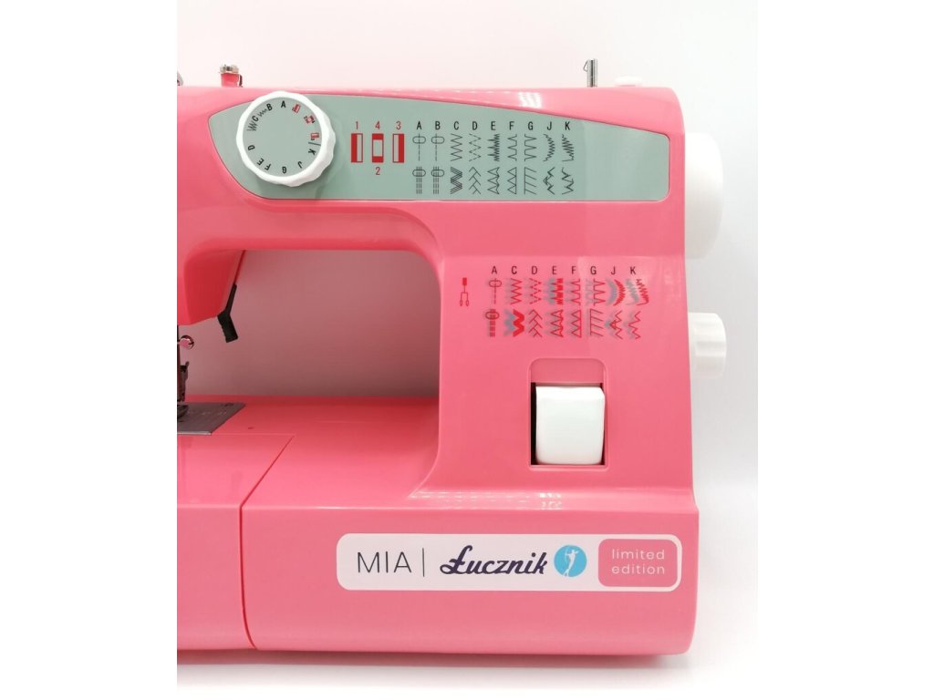 Šijací stroj Lucznik Mia je moderný šijací stroj do každej domácnosti. Tieto stroje sú vybavené 38 programami, kývnym CB chapačom, 4-krokovou poloautomatickou gombíkovou dierkou, voľným ramenom, plynulou reguláciou dĺžka stehu, spätným chodom, možnosťou šitia dvojihlou a ďalšími užitočnými funkciami. Má kovovú kostru a súčiastky a sú vhodné pre začiatočníkov aj skúsenejšie domáce krajčírky.
