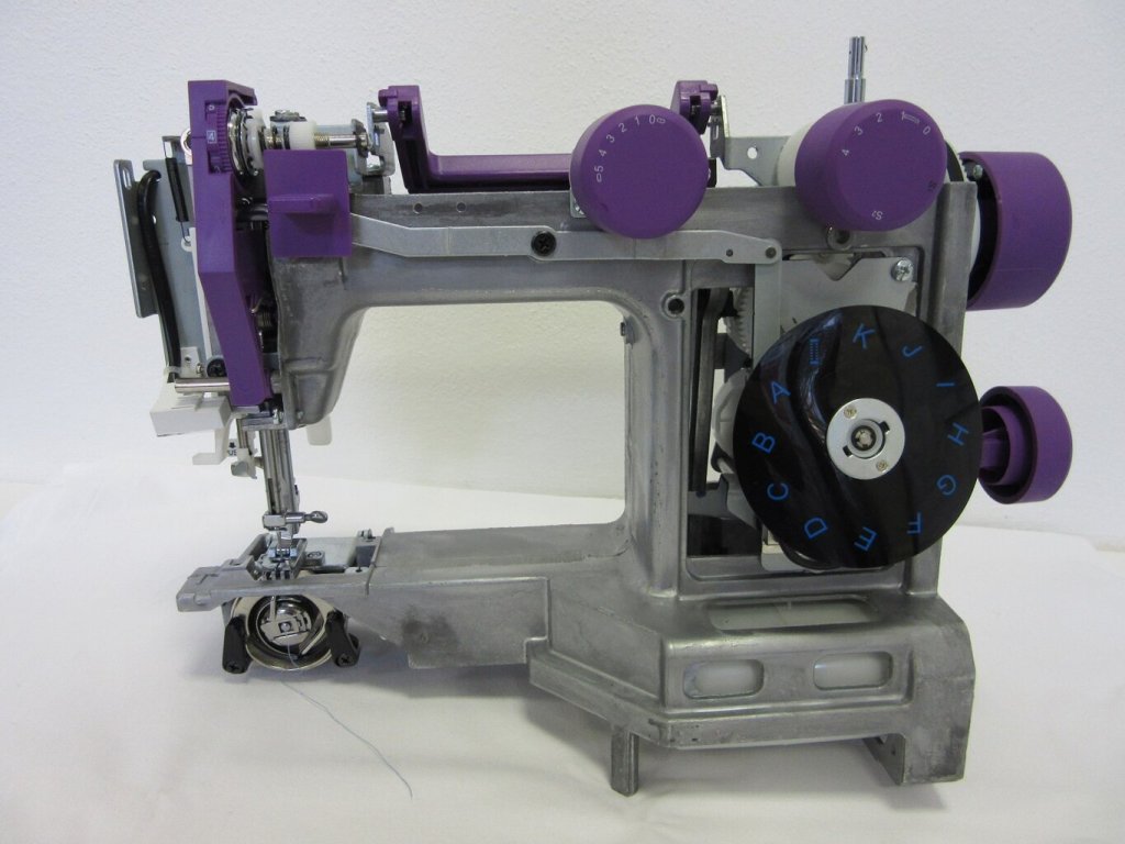 Robustná kovová konštrukcia, v šijacom mechanizme sú použité kovové súčiastky, vonkajšie časti stroja sú plastové