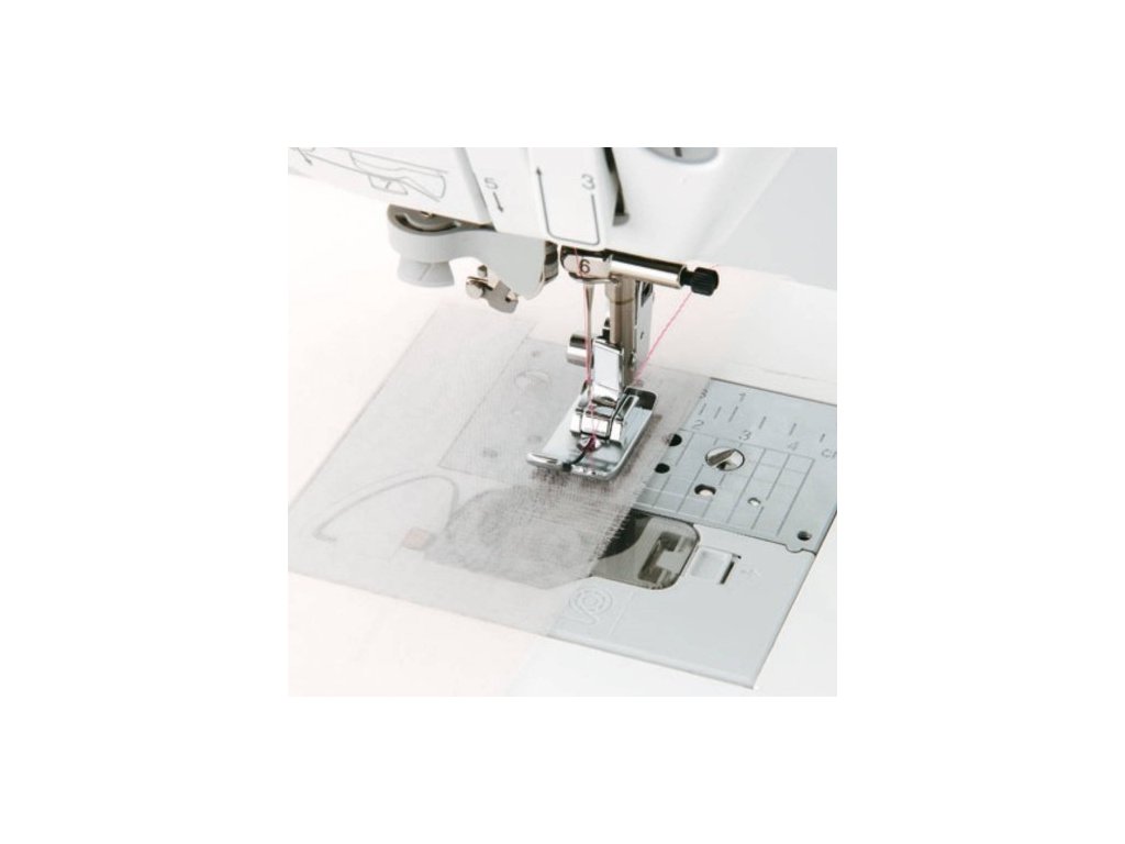 Pätka Brother na rovný steh F011N, ktorá slúži na lepšie vedenie látky pri šití rovným stehom. Pätka je vhodná pre šijacie stroje Brother so šírkou stehu až 5 mm ako s rotačným, tak aj s kývnym CB chapačom.