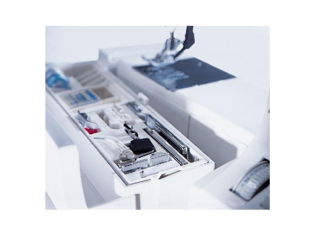 - Jednoduchá výmena prítlačnej pätky a stehovej dosky na jedno zacvaknutie