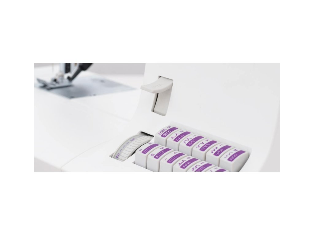 - Systém Easy Select – ľahká voľba stehu pomocou veľkých tlačidiel