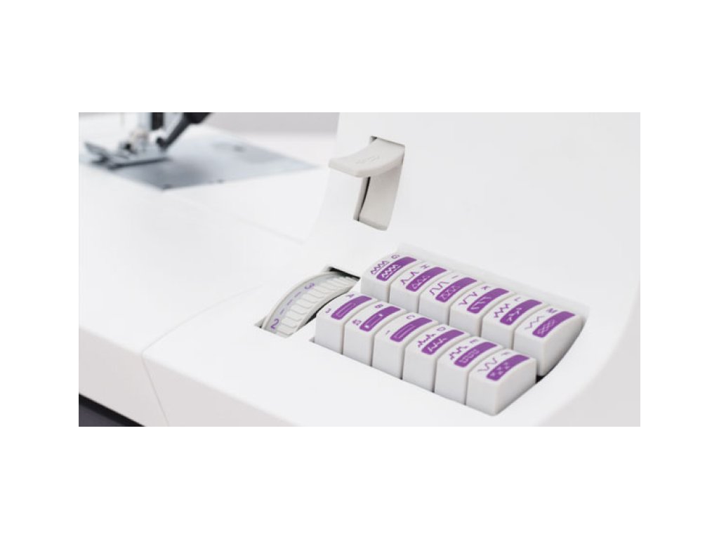 - Jednoduchá výmena prítlačnej pätky a stehovej dosky na jedno zacvaknutie