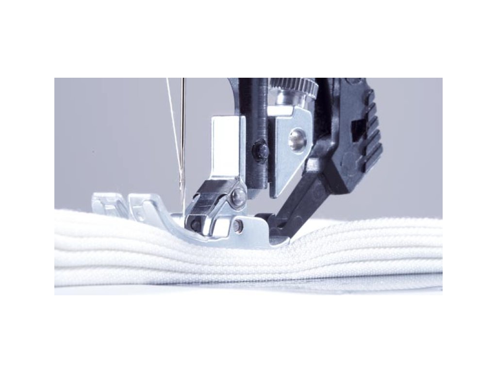 - Pätka na okraje látok a prišívanie zipsov (s horným podávaním)
