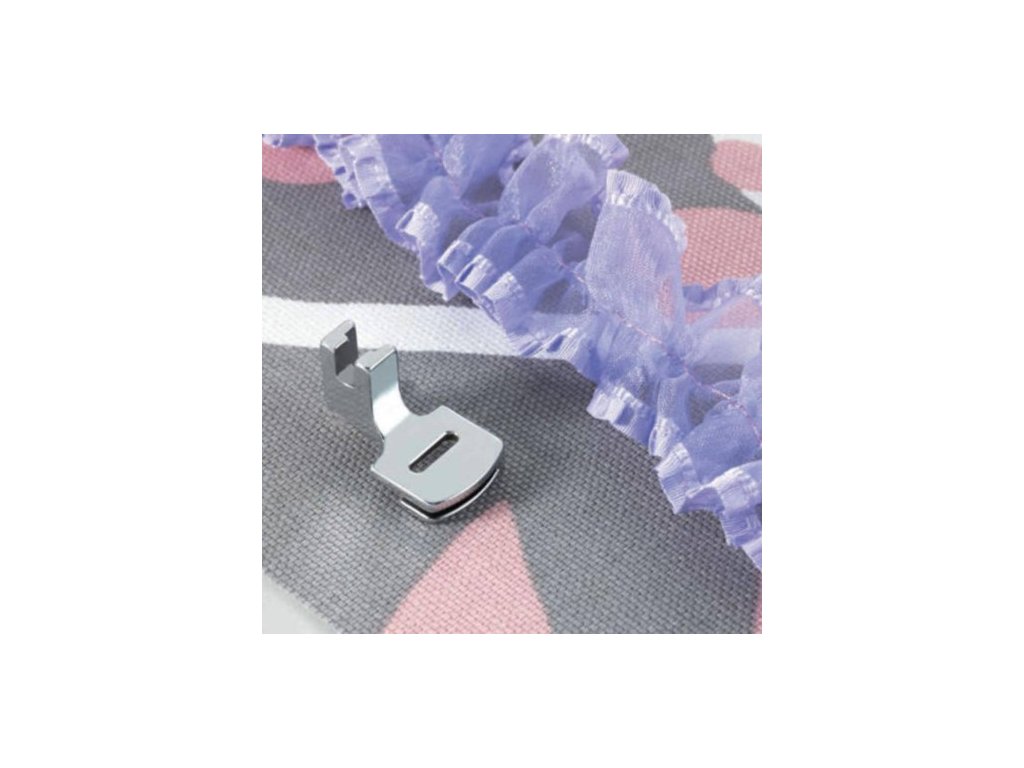 Naberacia pätka Brother F012N slúži na zošitie dvoch dielov látky, pričom okraj jednej z nich je zároveň nariasený. Je potrebné, aby naberaná látka bola poddajná. Piatka je určená pre všetky šijacie stroje Brother , ale šijacie stroje Super Galaxie alebo Ace+ musia byť vybavené adaptérom na zníženie pätkovej tyče.