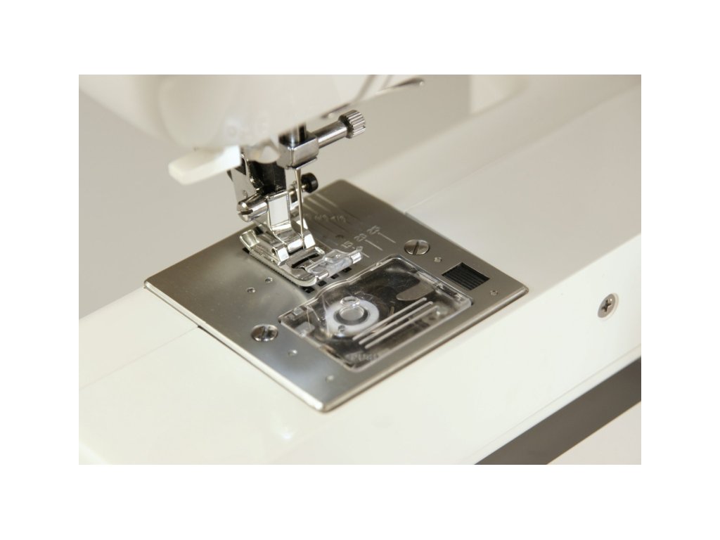 - Automatické nastavenie dĺžky (5 mm) a šírky (7 mm) stehu s možnosťou plynulej regulácie