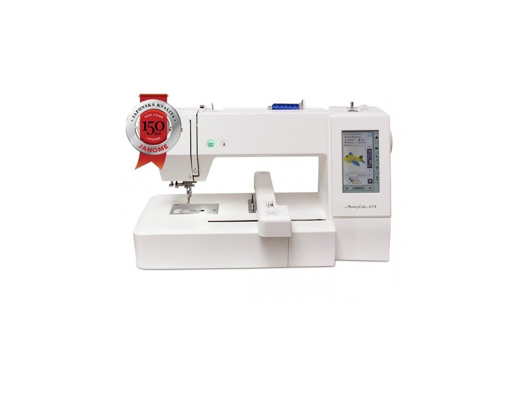 Vyšívací stroj Janome Memory Craft 400 E má elegantný a jednoduchý dizajn. Užívateľom ponúka 160 vyšívacích vzorov, 6 druhov písma a možnosť pripojenia cez USB na import Vašich vlastných návrhov. Veľkosť vyšívacej plochy je 200 x 200 mm. Stroj má automatické navliekanie nite, automatický odstrih nite, prehľadný LCD displej, možnosť editácie vzorov, zmeny ich veľkosti alebo otáčanie a veľa ďalších funkcií.